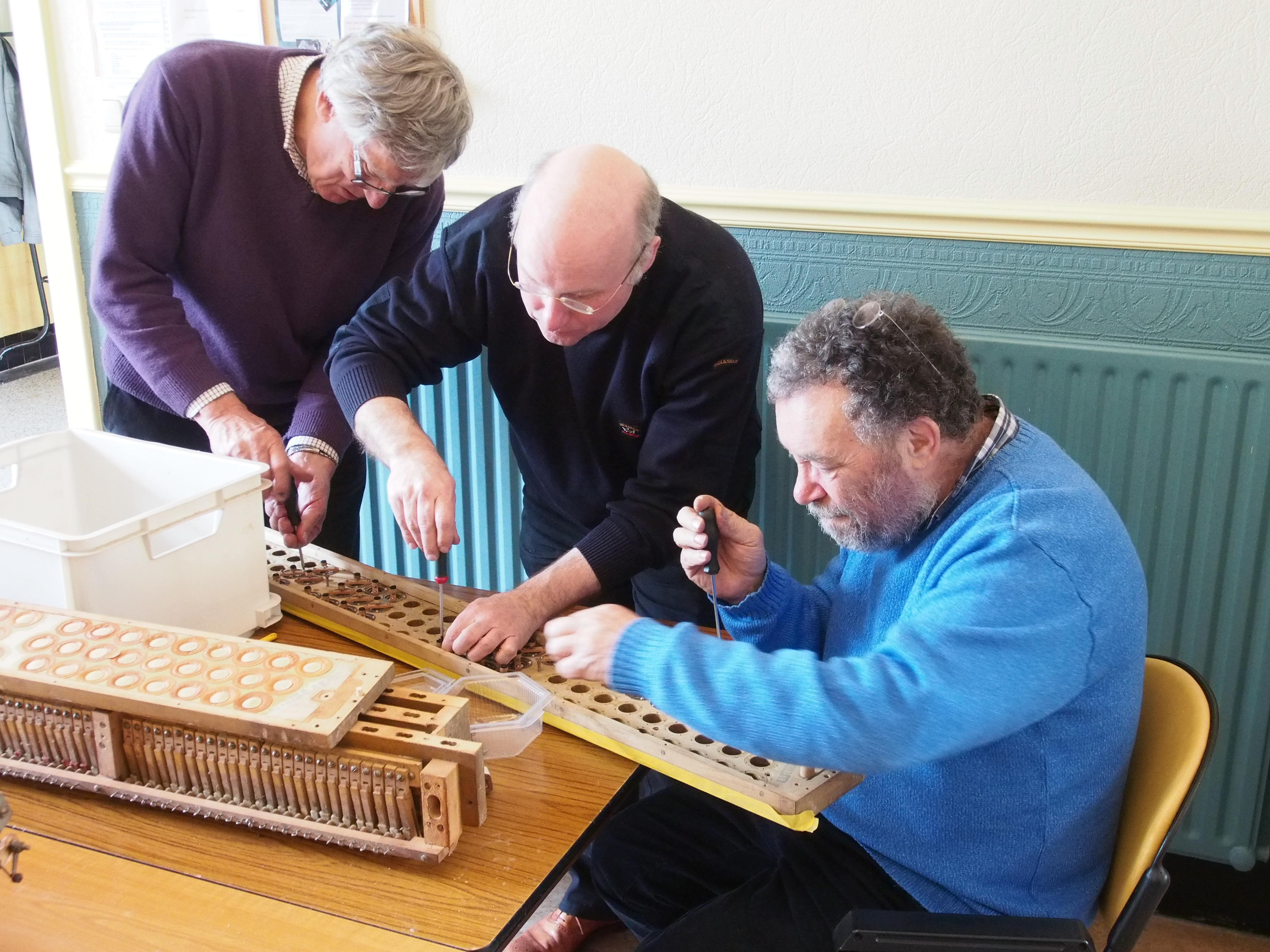 Vier zaterdagen per jaar organiseert de Nederlandse Pianolavereniging een restauratiedag waar leden onder professionele begeleiding kunnen werken aan hun eigen pianola.