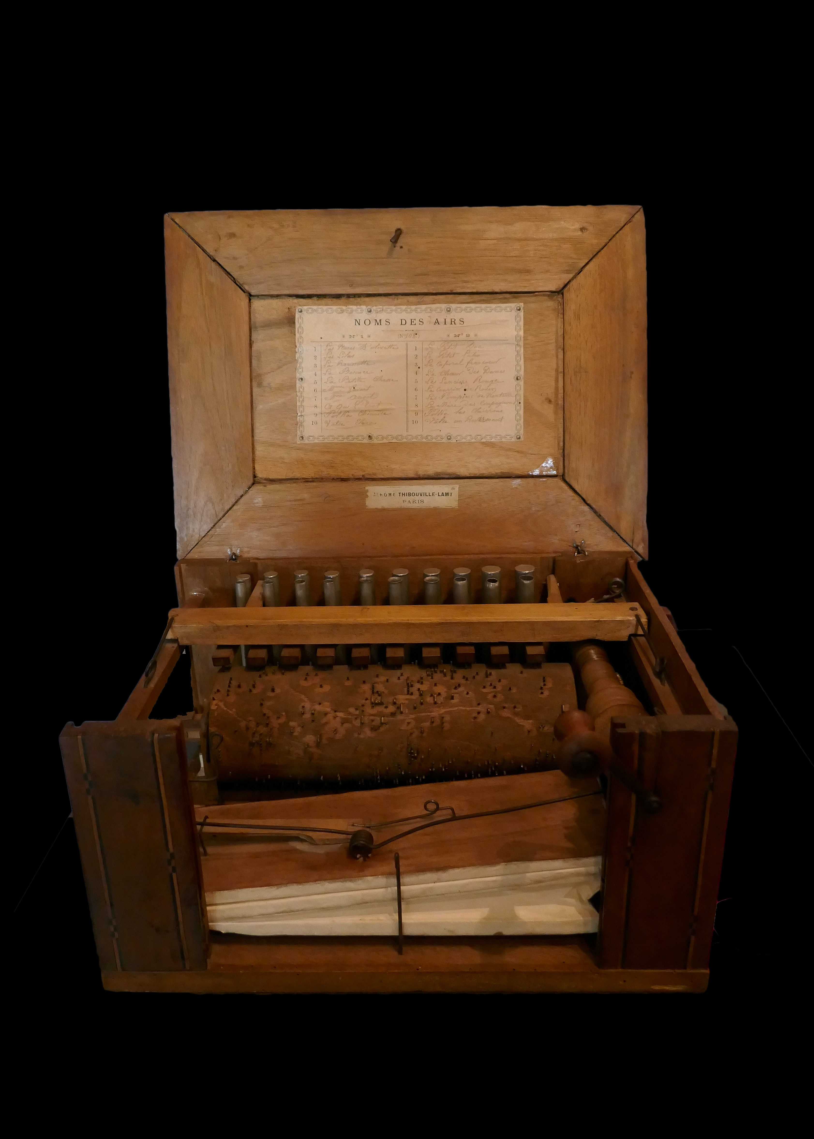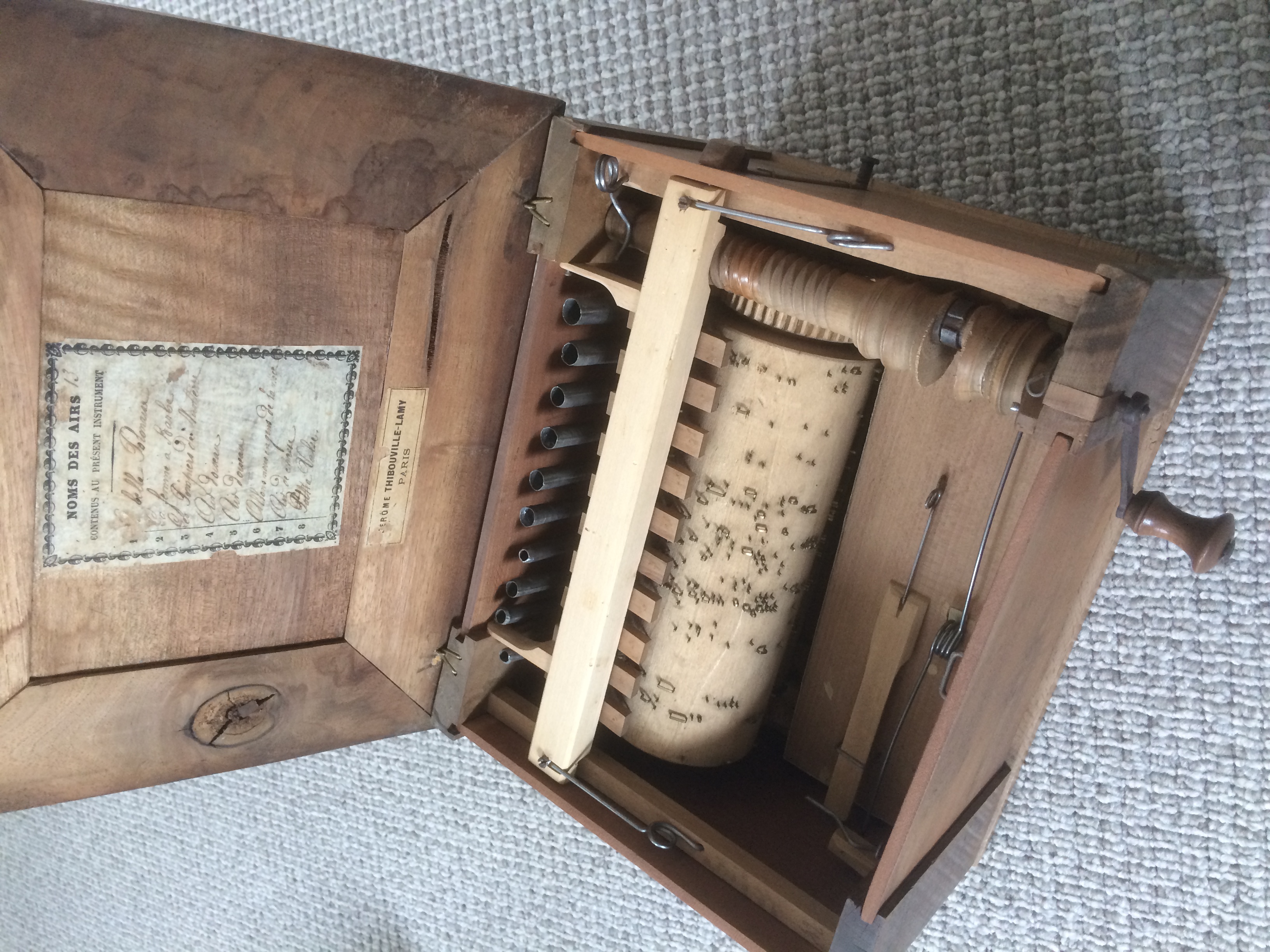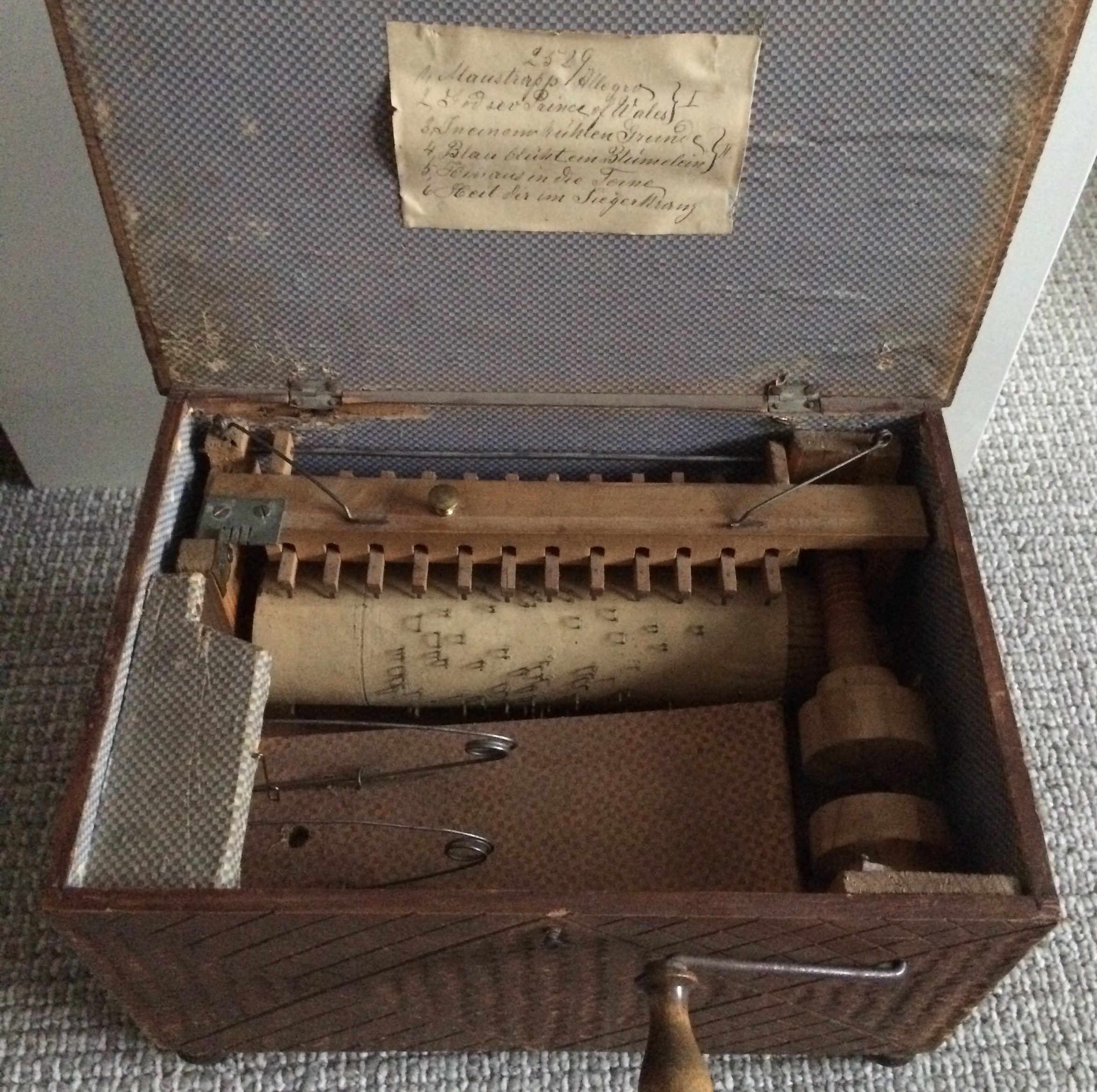 Duitse Serinette of Vogelwerkel ca. 1862. Vier cilinder omwentelingen, 6 melodieën :