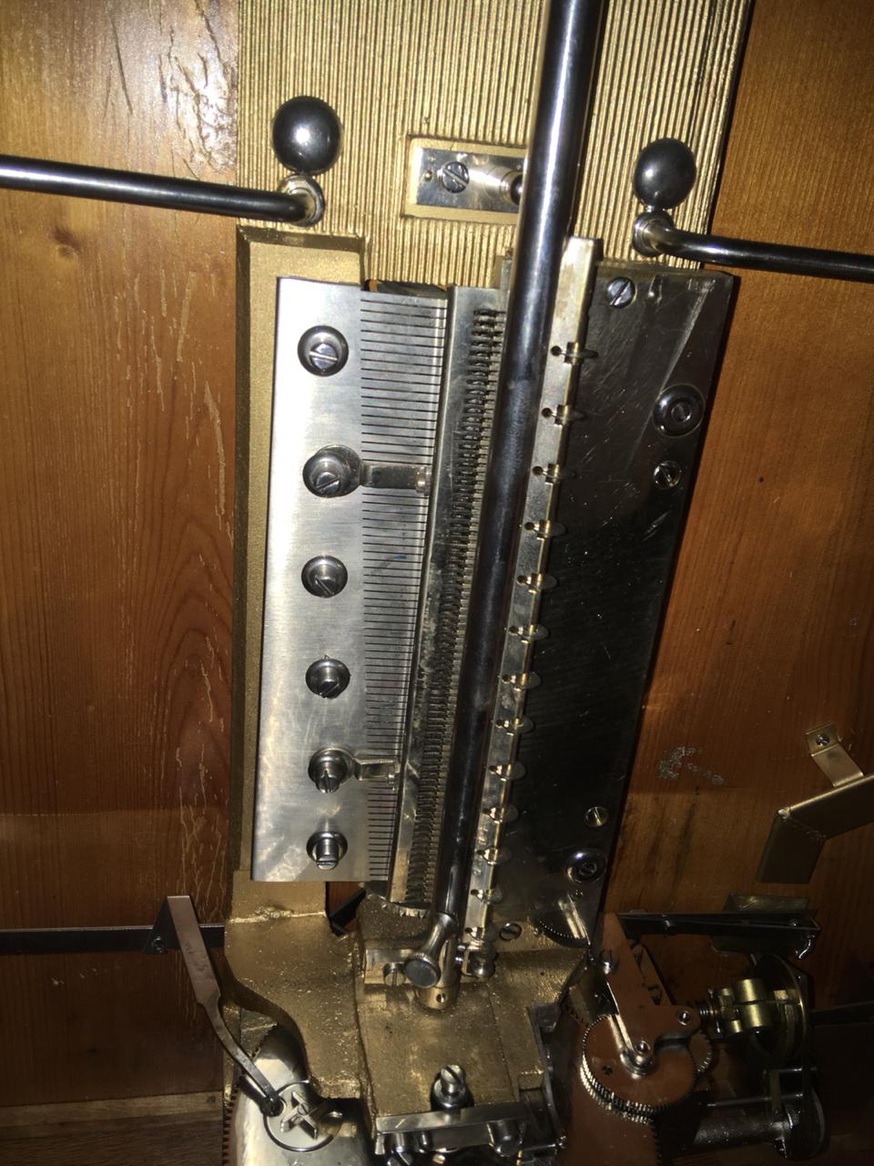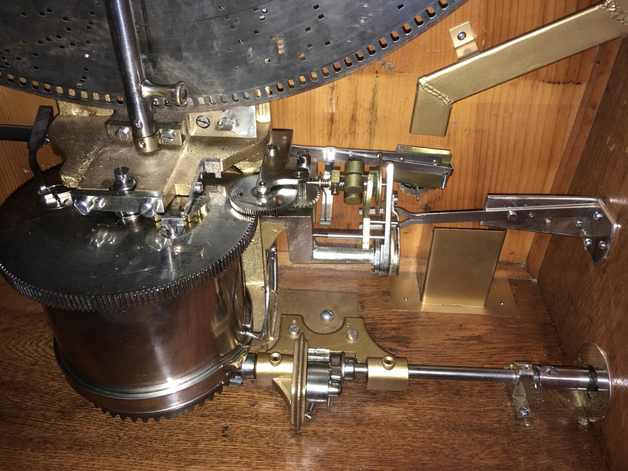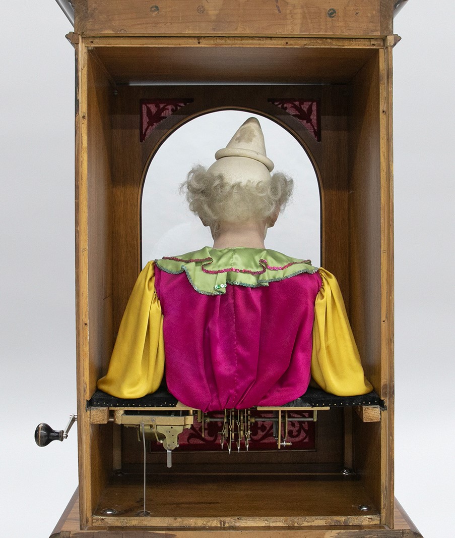 Een relatief laat exemplaar, zo rond 1900. Wel bijzonder door zijn ingenieuze automaat in de vorm van een op de muziek meebewegende clown. Gustave en Henry Vichy waren beroemde bouwers van deze eerste robots in de 19e eeuw.