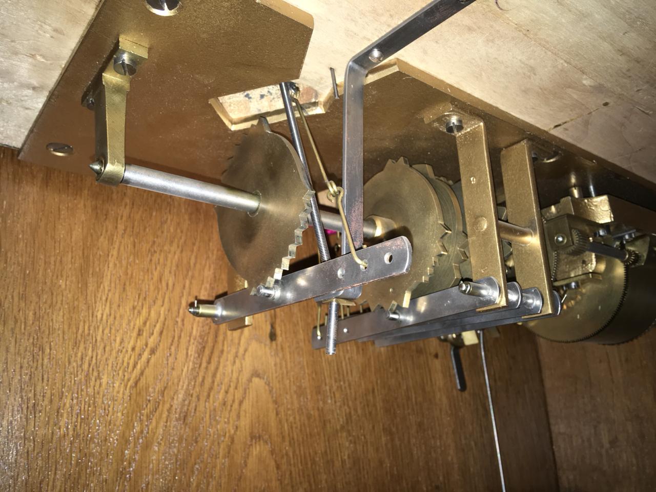 Muntinworp activeert plaat Kam 2 x 77 tanden Nokkenschijven automaat met (met linker arm) en automaat via pen. verbinding naar handen en schouder