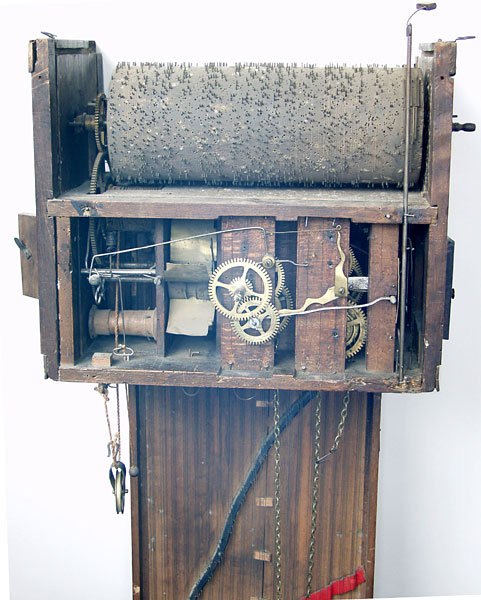 1770 Ottsen (Hertogdom Sleeswijk - D). Een harpklok met stalen snaren. Voor het eerst samengesteld door klokkenmaker Ottsen naar aanleiding van een opdracht. Het werd een combinatie van een Engels uurwerk, een Berlijnse Harfenett (Arpanetta) plus 12 houten gepende cilinders. De besnaring werd gemonteerd in een kast met zangbodem en kende een hamertechniek met tuimelaars. Op de zangbodem loopt een gegolfde kam met stiften, die de snaren op bepaalde lengtes afklemmen. Geen dempers, wel vilt tegen het medeklinken. Hij assembleert het geheel tot een staande klok met onderin twee kasten. Eén voor de cilinders en de ander herbergt een inklapbaar trapje om de cilinders te wisselen en de snaren te stemmen. De houten cilinders zijn verwisselbaar. Harfenuhren kenden 1 of 2 cilinders. In het laatste geval de ene voor de fluiten, de andere voor de snaren. Carl Philipp Emanuel Bach, de tweede zoon van Johann Sebastiaan, componeerde veel voor deze snaarklokken. De segmenten van twee en drie snaren werden door dubbele hamers bespeeld. De cilinders hadden twee melodieën van elk 55 seconden.