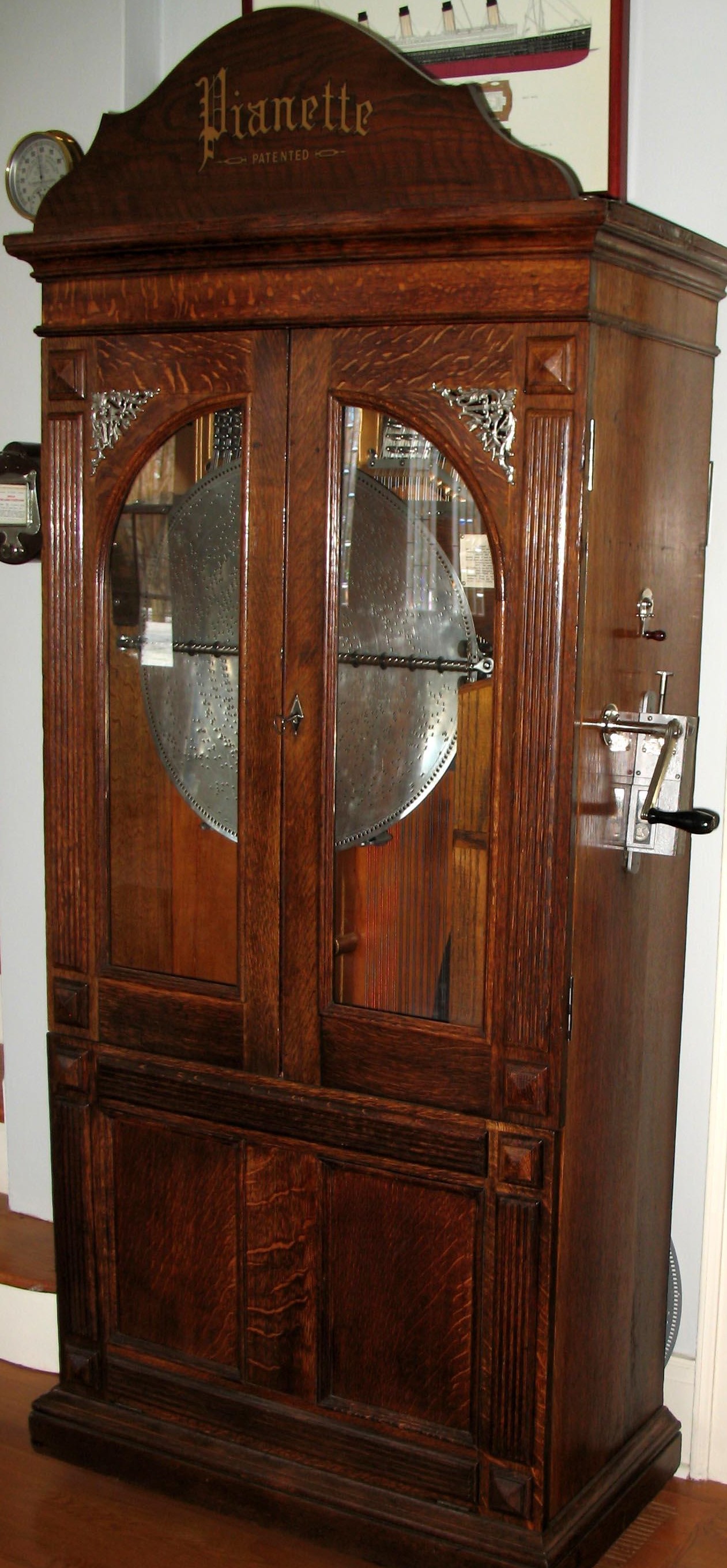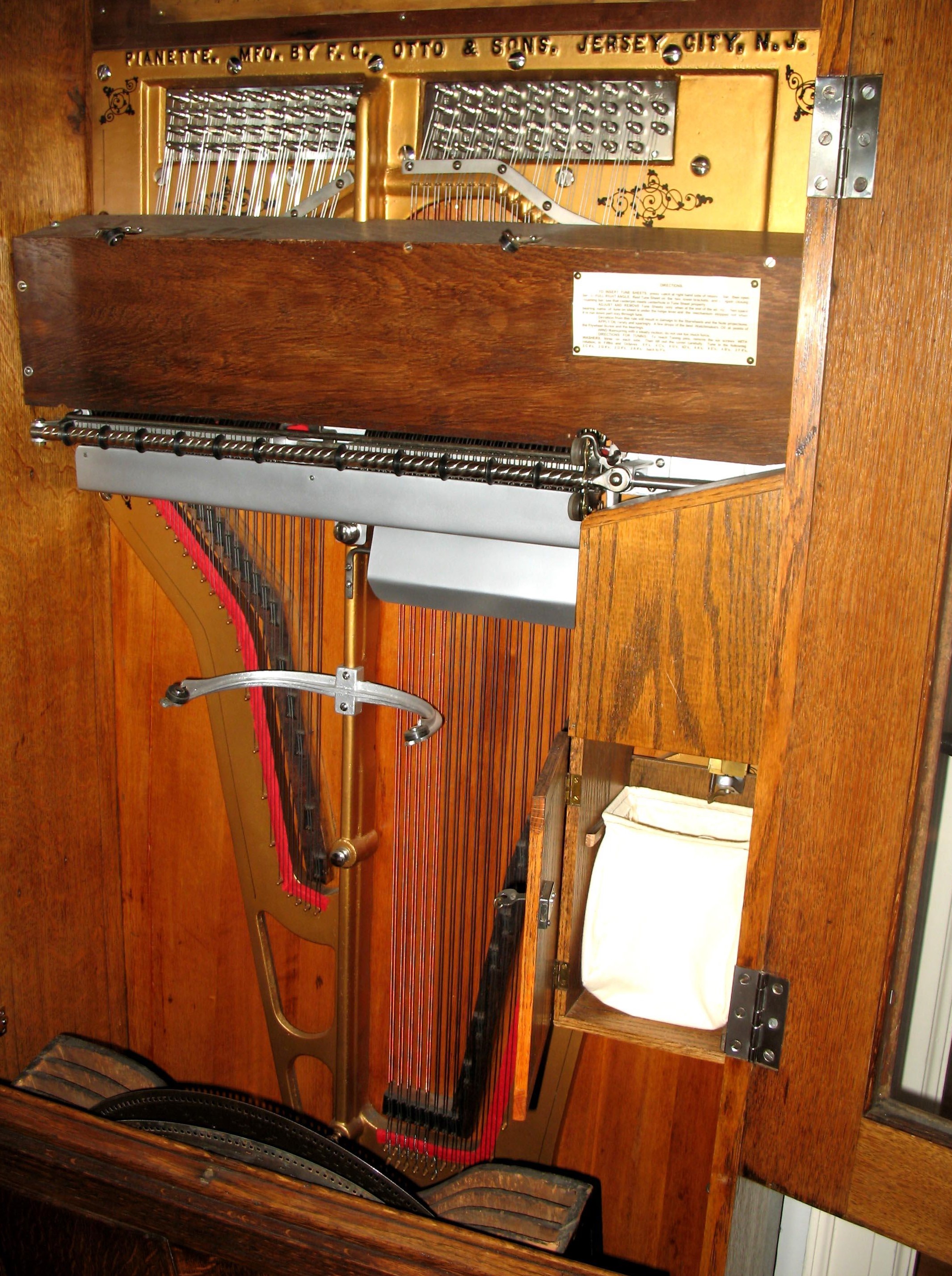 Rond de eeuwwisseling ontstonden er allerlei nieuwe initiatieven rond muziek en geluid. Eén van die ontwikkelingen waren muntautomaten op allerlei gebied. Otto had al platenspelers met muntinworp, maar ook op pianogebied zag men mogelijkheden. Ik heb niet kunnen ontdekken of zij de eerste waren. In ieder geval hebben ze hun patent vroeg laten registreren (805989 – november 1904). Een piano met muntautomaat, die functioneert op een metalen plaat, de Pianette. Na opwinding speelt het apparaat 25 minuten, het heeft een dubbele rij hamers en is 39 toons (afb 5 en 6). De plaat is 52 cm.